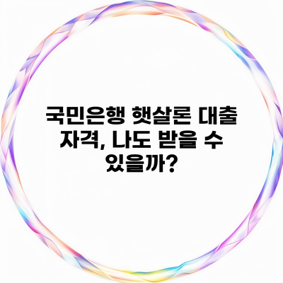 국민은행 햇살론 대출 자격, 나도 받을 수 있을까?