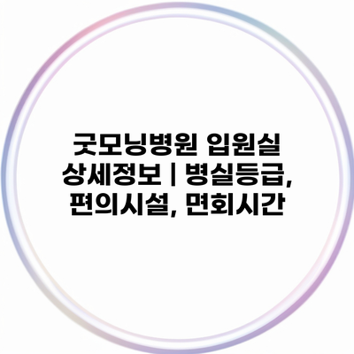 당신이 굿모닝병원에 입원하게 된다면, 병실의 종류, 편의시설, 면회시간 등을 미리 알고 있으면 큰 도움이 될 거예요. 이번 포스트에서는 굿모닝병원의 입원실에 대한 다양한 정보를 자세히 소개하겠습니다.