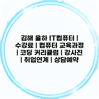 ✅ 김해 율하 IT컴퓨터의 모든 교육 정보를 쉽게 확인하세요.
