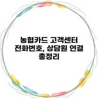 농협카드를 이용하면서 궁금한 점이나 문제 발생 시, 고객센터를 빠르고 효과적으로 활용하는 방법이 매우 중요해요. 특히 농협카드는 다양한 서비스와 카드 종류를 제공하고 있어 고객센터에 문의할 일이 생기기 마련이에요. 이번 포스팅에서는 농협카드 고객센터 전화번호와 상담원 연결 방법을 자세히 알아보도록 할게요.