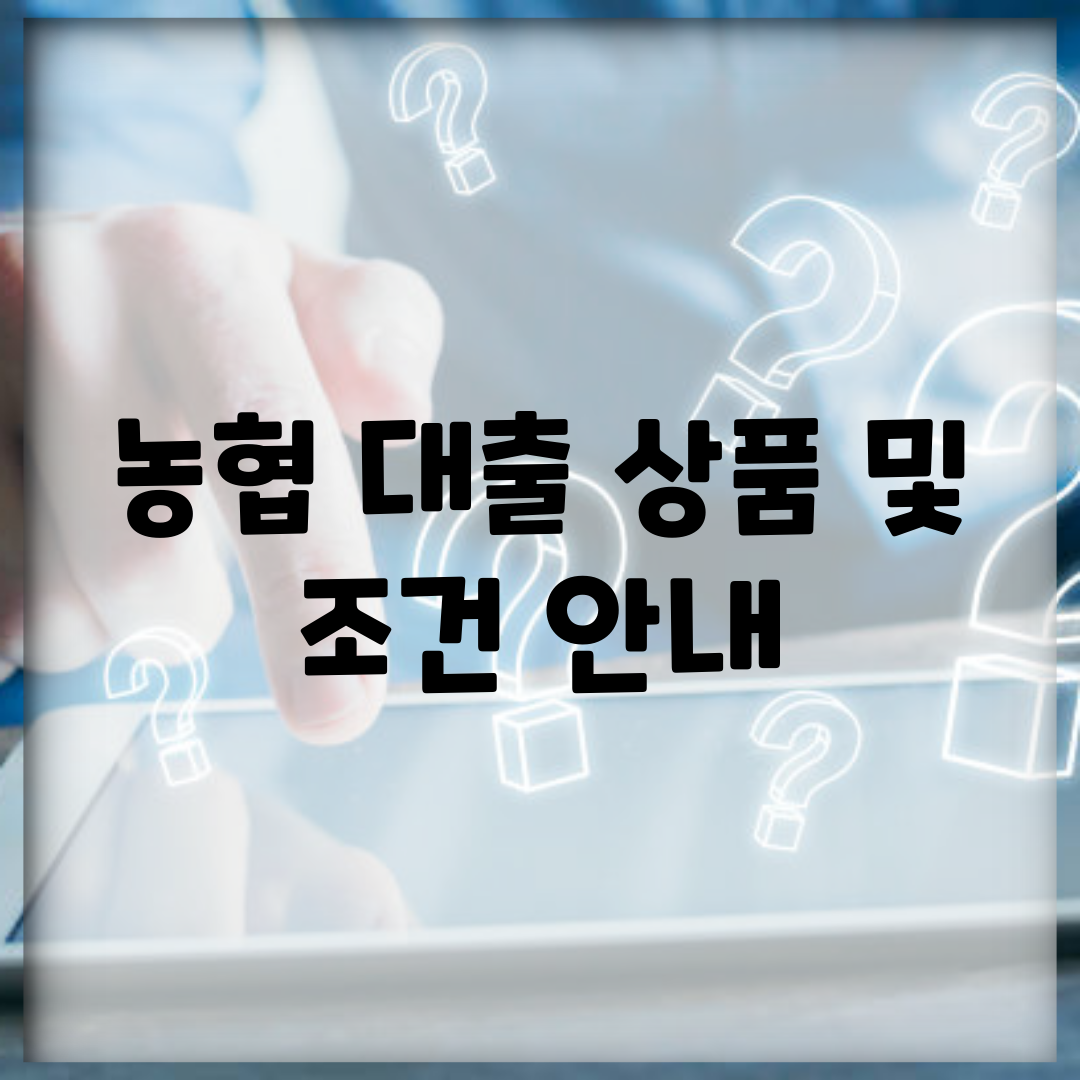 이제부터 농협 대출 상품 및 조건 안내에 대해 자세히 알아보겠습니다.