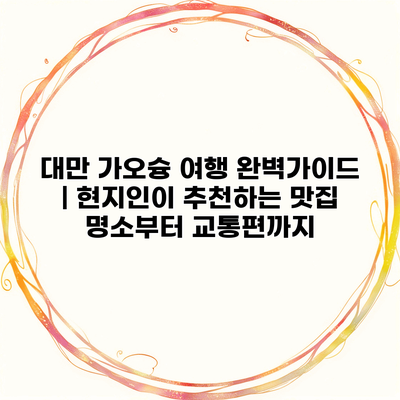 가오슝은 다양한 매력을 가진 도시로, 맛집과 명소가 가득해요. 여행을 통해 새로운 경험과 추억을 만드는 것이 중요한데, 가오슝은 그 꿈을 실현할 수 있는 최적의 장소랍니다.