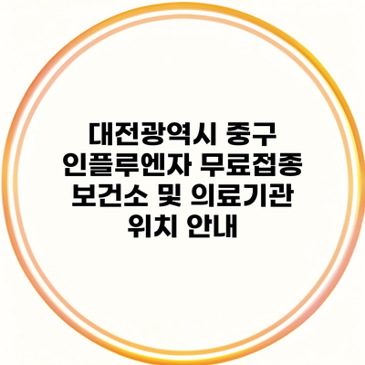 대전광역시 중구에서는 주민들의 건강을 위해 여러 곳에서 인플루엔자 예방접종을 무료로 실시하고 있어요. 아래에 주된 보건소 및 의료기관의 목록을 정리해드릴게요.