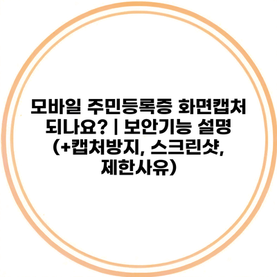 모바일 주민등록증은 현대 사회에서 필수적인 인증 도구로 빠르게 자리 잡고 있어요. 그렇다면 모바일 주민등록증의 보안 기능과 화면 캡처가 가능한지에 대해 자세히 알아보도록 할게요.