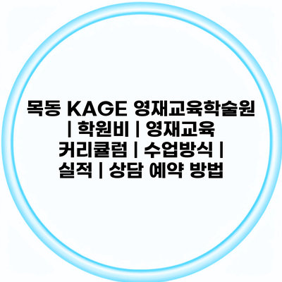 목동 KAGE 영재교육학술원, 학원비와 커리큘럼 안내