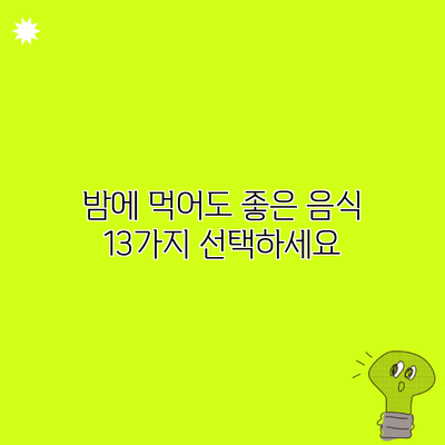이번 글에서는 밤에 먹어도 좋은 음식 13가지를 소개해 드렸어요. 밤에는 올바른 영양소를 섭취하여 건강을 유지하는 것이 중요해요! 영양가 높은 음식을 적절히 섭취한다면, 피로한 하루의 끝에 조금 더 건강하게 마무리할 수 있습니다.