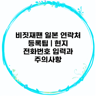 비짓재팬 일본 연락처 등록팁 | 현지 전화번호 입력과 주의사항