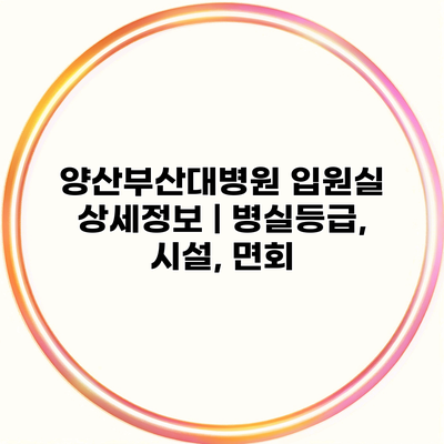 양산부산대병원은 많은 환자들에게 신뢰받는 의료기관으로, 입원실에 대한 다양한 정보가 필요하실 거예요. 이번 글에서는 양산부산대병원 입원실 상세정보에 대해 자세히 알아보겠습니다. 특히, 병실등급, 시설, 면회 등의 상세 내용을 포함하여 여러분이 궁금할 만한 사항들을 폭넓게 다루어 보겠습니다.