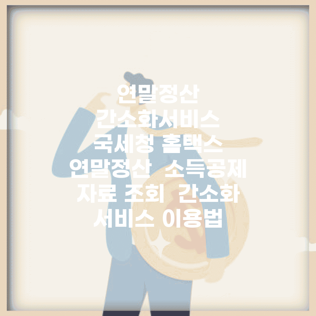 국세청 홈택스 연말정산 간소화 서비스를 통해 소득공제 자료를 쉽고 빠르게 조회하는 방법을 소개합니다. 복잡한 연말정산, 간소화 서비스를 활용하여 더욱 편리하게 준비해 보세요.