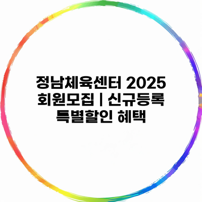 정남체육센터 2025 회원모집 및 특별 할인 혜택 안내