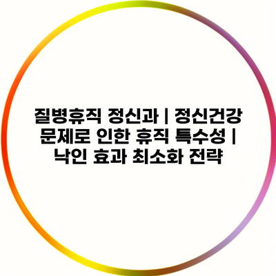 전국의 많은 근로자들이 정신건강 문제로 고통받고 있어요. 이 문제는 개인만의 고통이 아니라, 직장 환경 전반에 영향을 미치는 중요한 이슈랍니다. 특히, 정신과 문제로 인한 질병 휴직은 많은 사람들에게 고민거리가 되고 있어요. 그럼 이러한 질병 휴직이 왜 발생하며, 어떻게 최소화할 수 있을까요?