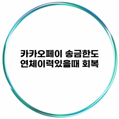 카카오페이 송금한도의 연체 이력을 회복하기 위한 방법은 여러 가지가 있어요. 이 글에서 제시한 방법들을 참고하여 자신의 재정 상태를 정확히 파악하고, 적절한 조치를 취하면 송금 한도를 다시 회복할 수 있을 것입니다. 자신의 재정 상태를 개선하기 위해 지속적으로 노력하며, 가급적 연체가 발생하지 않도록 관리를 해야 한다는 점을 잊지 마세요! 이렇게 준비하고 관리하는 것이 금융 생활에 큰 도움이 될 것입니다.
