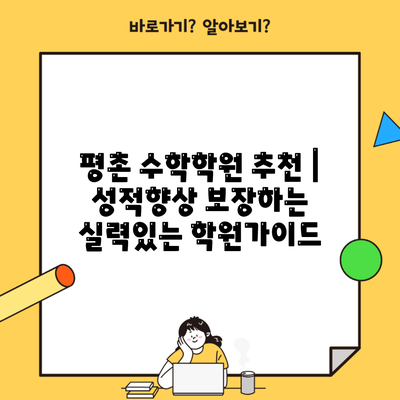 수학은 많은 학생들에게 어려운 과목으로 여겨지죠. 하지만 평촌 지역에는 성적 향상을 보장하는 실력 있는 수학학원들이 많아요. 오늘은 그러한 학원들을 소개하고, 학생들이 맞춤형으로 선택할 수 있도록 도와드릴게요.