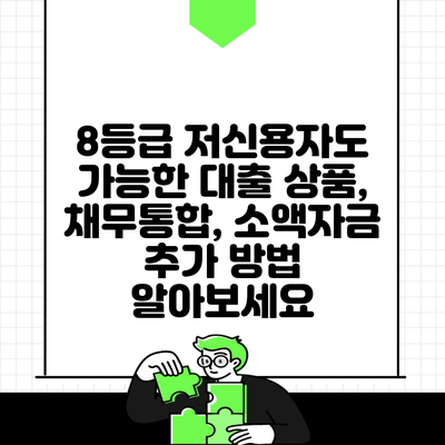 8등급 저신용자도 가능한 대출 상품과 채무통합은 여러분의 재정 문제를 해결할 수 있는 아주 중요한 수단이에요. 대출을 고려할 때는 반드시 자신의 상황을 정확히 파악하고, 여러 조건을 비교해 보아야 해요. 또한, 채무 통합을 통해 이자부담을 줄일 수 있는 혜택도 충분히 살펴보시기 바랍니다.