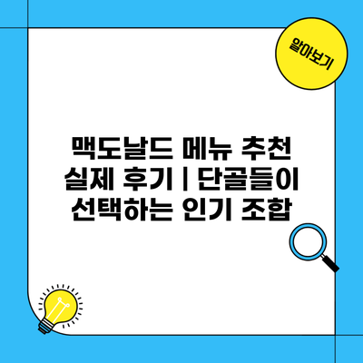맥도날드 세트메뉴 가격 비교 | 사이드 변경 시 추가 비용 안내