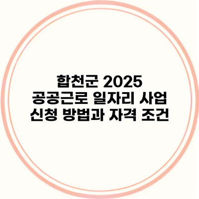 합천군 2025 공공근로 일자리 사업 신청 방법과 자격 조건