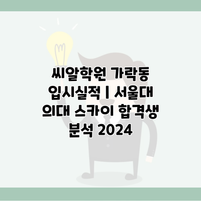 2024년 서울대 의대 스카이 합격생 분석은 단순한 입시 성적 이상의 의미를 지니고 있습니다. 상위권 대학에 합격하기 위한 전략과 준비 과정이 무엇인지, 씨알학원이 그 과정에서 어떤 역할을 하는지를 살펴보는 것이 중요해요. ✅ 신용관리사 시험의 모든 정보를 지금 확인해 보세요. 👉 신용관리사 시험정보 알아보기 씨알학원 가락동 입시실적 씨알학원은 가락동에서 많은 학생들에게 꿈의 대학에 진학할 수 있도록 돕는 … Read more
