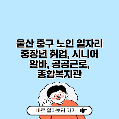 울산 중구 노인 일자리 중장년 취업, 시니어 알바, 공공근로, 종합복지관